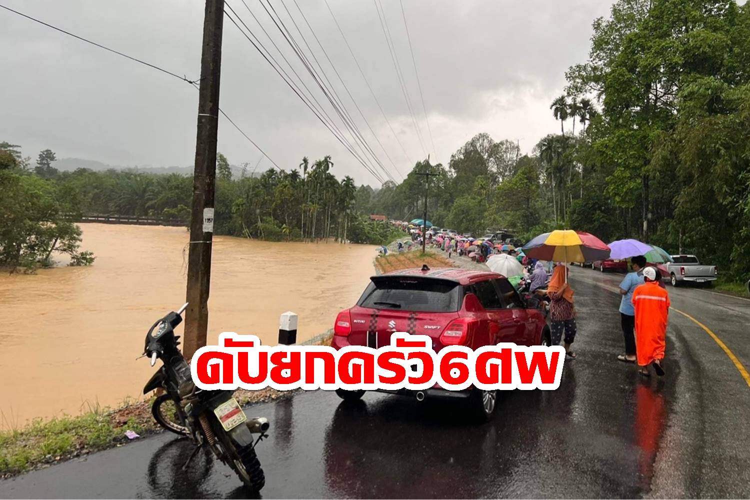 นราธิวาส-ครอบครัวครู 7 ชีวิตขับรถผ่านสะพานขณะทรุดตัวจากน้ำท่วมเคราะห์ร้ายจมหายไปทั้งคัน เสียชีวิตแล้ว 6 ราย สูญหายอีก 1 เร่งตามหาตัวจ้าละหวั่น