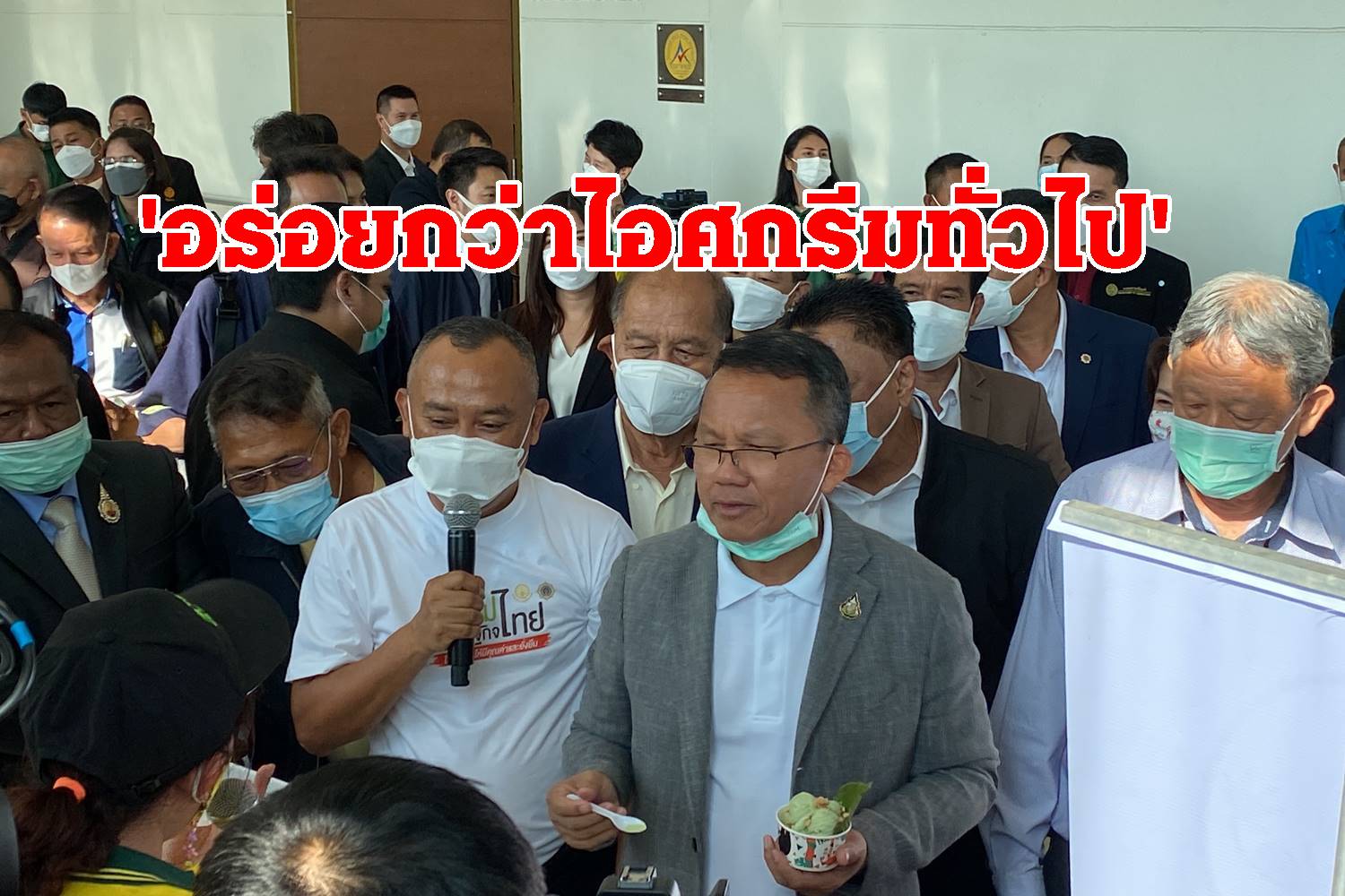 นายสมศักดิ์ พร้อมกับบอกว่าอร่อยกว่าไอติมธรรมดามาก และก่อนหน้าที่จะมาชิมไอติม ได้เดิมชมบูธวิสาหกิจชุมชนสมุนไพรไทยทุ่งนารี อ.ป่าบอน จ.พัทลุง ได้ใช้มือหยิบใบกระท่อมก้านแดงใบสด ๆ รูดพร้อมป้อนเข้าปากแล้วเคี้ยวอย่างอร่อย เหมือนกับผู้ชำนาญ