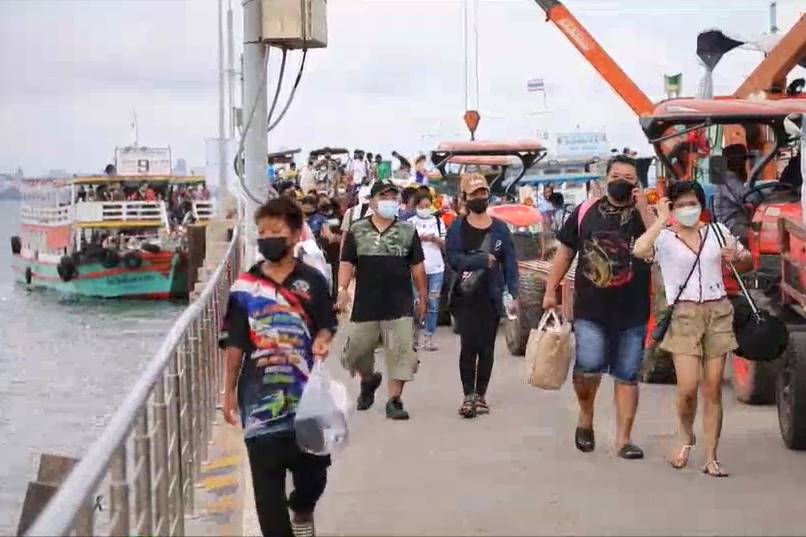 บรรยากาศการท่องเที่ยวในช่วงเทศกาลวันหยุดยาว 4 วัน พบว่าในพื้นที่เมืองพัทยา จ.ชลบุรี เริ่มมีนักท่องเที่ยวเดินทางมาเที่ยวพักผ่อนกันเป็นจำนวนมาก โดยเฉพาะที่พื้นที่เกาะล้านซึ่งมีนักท่องเที่ยวจำนวนมากต่างทยอยเดินทางมานั่งเรือโดยสารเดินทางข้ามฟาดไปเที่ยวที่เกาะล้านตลอดทั้งวันจำนวนหลายพันคน