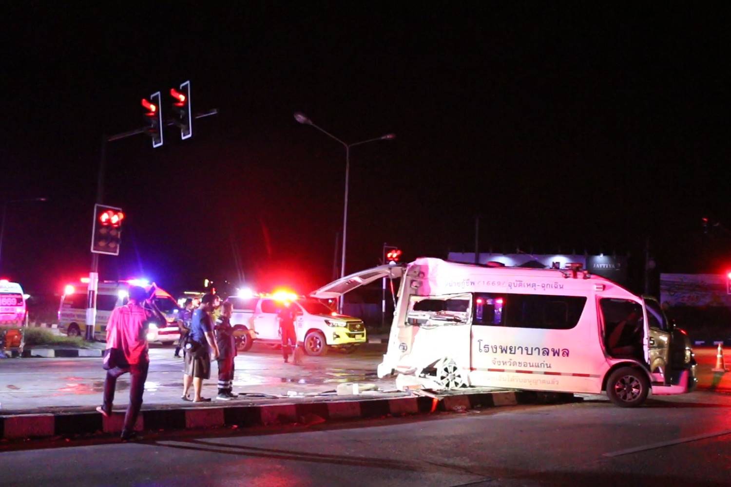ขอนแก่น-สนั่นสี่แยกไฟแดง! กระบะชนกับรถพยาบาล ผู้ป่วย ญาติ พยาบาลรวมทั้งคนนั่งมากับรถคู่กรณีบาดเจ็บรวม 6 ราย