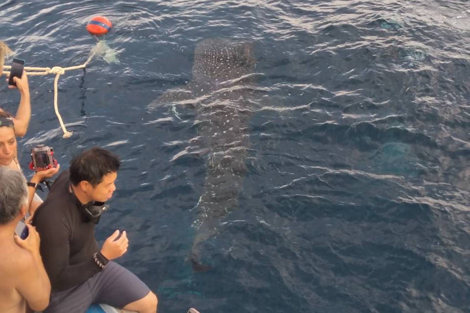 สุราษฎร์ธานี-ฉลามวาฬใหญ่โผล่ต้อนรับข้างเรือทัวร์ดำน้ำ สร้างความตื่นตาดีใจให้นักท่องเที่ยวที่เดินทางมาในช่วงวันหยุดยาว