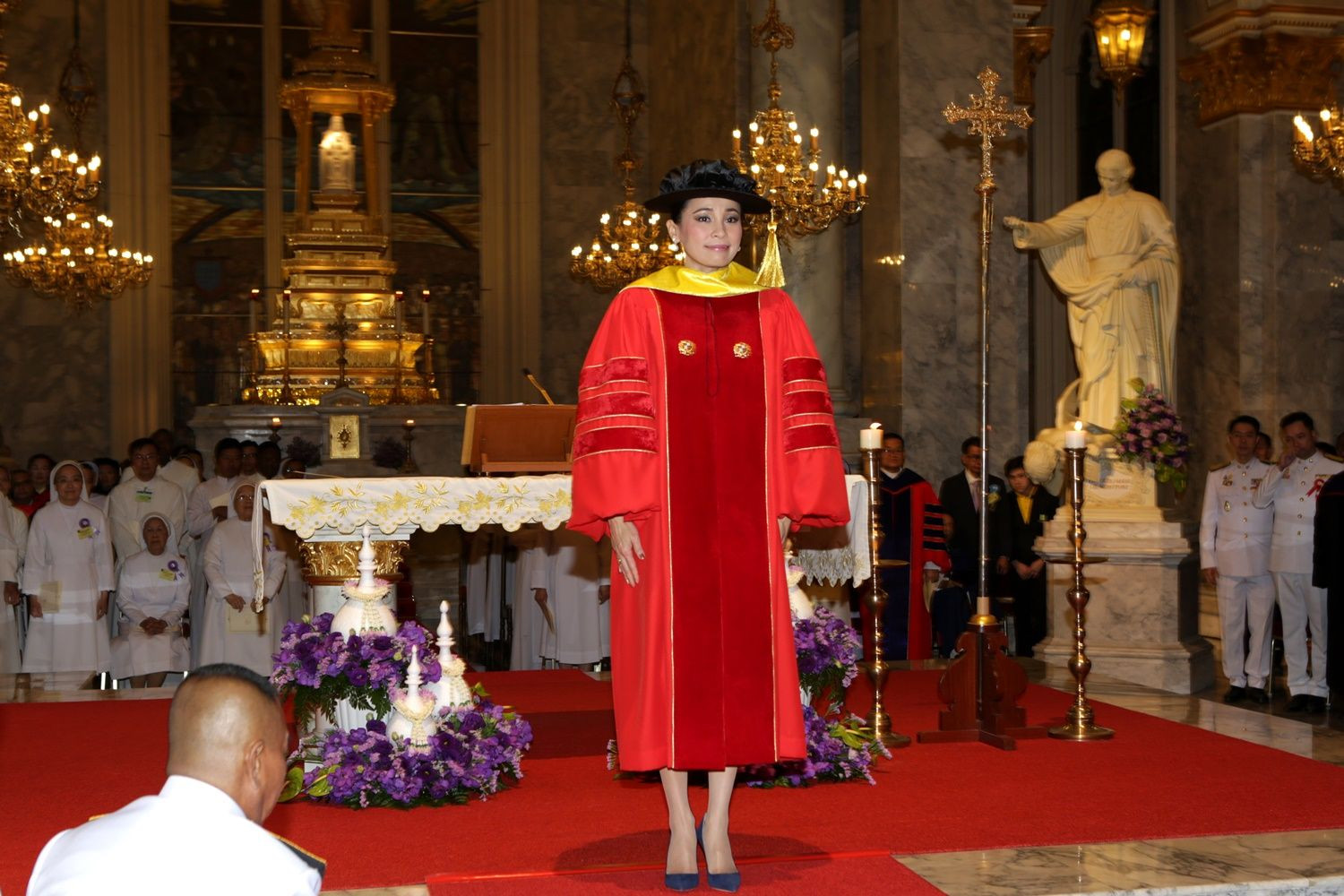 ต่อมาเสด็จฯไปยังชั้น 3 ทอดพระเนตรนิทรรศการวิชาการ และนิทรรศการความเป็นมา 50 ปีแห่งการก่อตั้งมหาวิทยาลัยอัสสัมชัญ และทรงฉลองพระองค์ครุยดุษฎีบัณฑิต ที่ชั้น6 แล้วประทับรถยนต์พระที่นั่ง เสด็จออกจากอาสนวิหารแห่งการเรียนรู้ ไปยัง วัดประจำมหาวิทยาลัยอัสสัมชัญ เสด็จฯเข้าภายในวัดพระคาร์ดินัล ฟรังซิสเซเวียร์ เกรียงศักดิ์ โกวิทวาณิช ภาวนาเริ่มพิธี ภราดา เดชาชัย ศรีพิจารณ์ นายกสภามหาวิทยาลัยอัสสัมชัญ ทูลเกล้า ๆ ถวายคำประกาศราชสดุดีพระเกียรติคุณ ภราดา ศิริชัย ฟอนซีกา กรรมการสภามหาวิทยลัยอัสสัมชัญ ทูลเกล้า ฯ ถวาย พระมาลาดุษฎีบัณฑิต และผ้าประดับพระอังสา ภราดา บัญชา แสงหิรัญ อธิการบดี ทูลเกล้า ๆ ถวายปริญญาปรัชญาดุษฎีบัณฑิตกิตติมศักดิ์ สาขาวิทยาการคอมพิวเตอร์ แด่สมเด็จพระนางเจ้าฯพระบรมราชินี