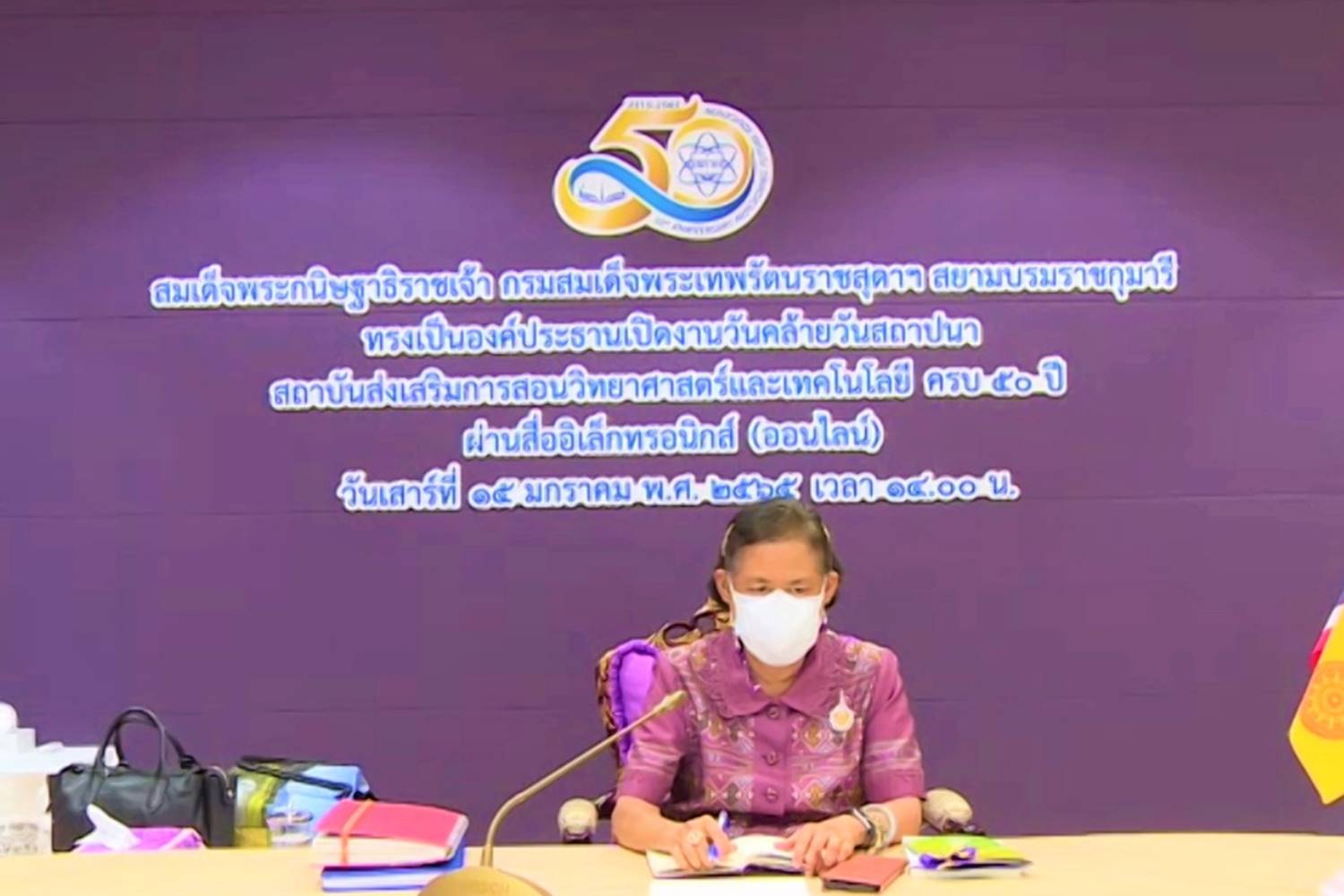 เมื่อวันที่15 มกราคม 2565 เวลา 14.00 น. สมเด็จพระกนิษฐาธิราชเจ้า กรมสมเด็จพระเทพรัตนราชสุดาฯ สยามบรมราชกุมารี เสด็จลง ณ ห้องประชุม อาคารหอพระสมุดส่วนพระองค์ วังสระปทุม ทรงเปิดงาน วันคล้ายวันสถาปนาสถาบันส่งเสริมการสอนวิทยาศาสตร์และเทคโนโลยี (สสวท.) ครบ 50 ปี ผ่านสื่ออิเล็กทรอนิกส์ออนไลน์ โดยทรงมีพระราชานุญาตให้ คุณหญิงกัลยา โสภณพนิช รัฐมนตรีช่วยว่าการกระทรวงศึกษาธิการ ทูลเกล้าฯ ถวายสูจิบัตรและหนังสือที่ระลึก ๕๐ ปี ศาสตราจารย์ประสาท สืบค้า ประธานกรรมการ สสวท. กราบบังคมทูลสำนึกในพระมหากรุณาธิคุณ ศาสตราจารย์ชูกิจ ลิมปิจำนงค์ ผู้อำนวยการ สสวท. กราบบังคมทูลรายงานภาพรวมการจัดงานวันคล้ายวันสถาปนา สสวท.ครบ 50 ปี และทอดพระเนตรวีดิทัศน์ 50 ปี สสวท.