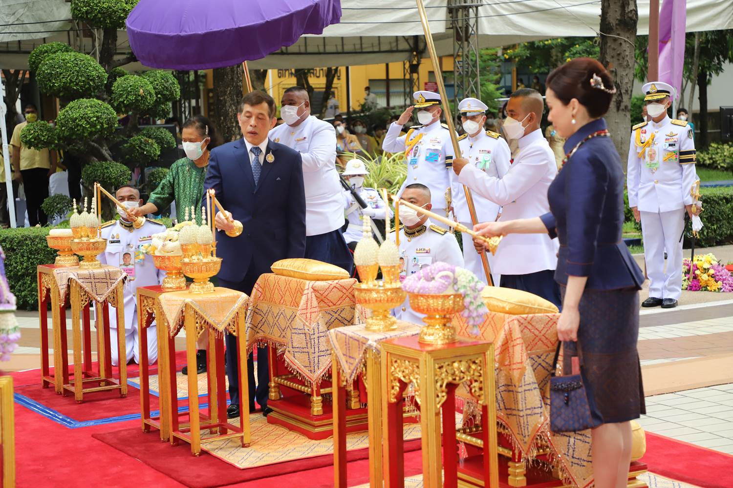 จากนั้น เสด็จพระราชดำเนินไปถวายราชสักการะพระราชานุสาวรีย์สมเด็จพระมหิตลาธิเบศร อดุลยเดชวิกรม พระบรมราชชนก ทรงวางพุ่มดอกไม้ ทรงจุดธูปเทียนเครื่องทองน้อยถวายราชสักการะ เสร็จแล้ว เสด็จพระราชดำเนินไปยังศาลาศิริราช 100 ปี เพื่อถวายราชสักการะพระราชานุสาวรีย์สมเด็จพระศรีนครินทราบรมราชชนนี ทรงวางพุ่มดอกไม้ ทรงจุดธูปเทียนเครื่องทองน้อยถวายราชสักการะ ต่อจากนั้น พระบาทสมเด็จพระเจ้าอยู่หัว ทรงจุดธูปเทียนเครื่องนมัสการบูชาพระรัตนตรัย ทรงกราบ ทรงศีล ประธานสงฆ์ถวายศีล