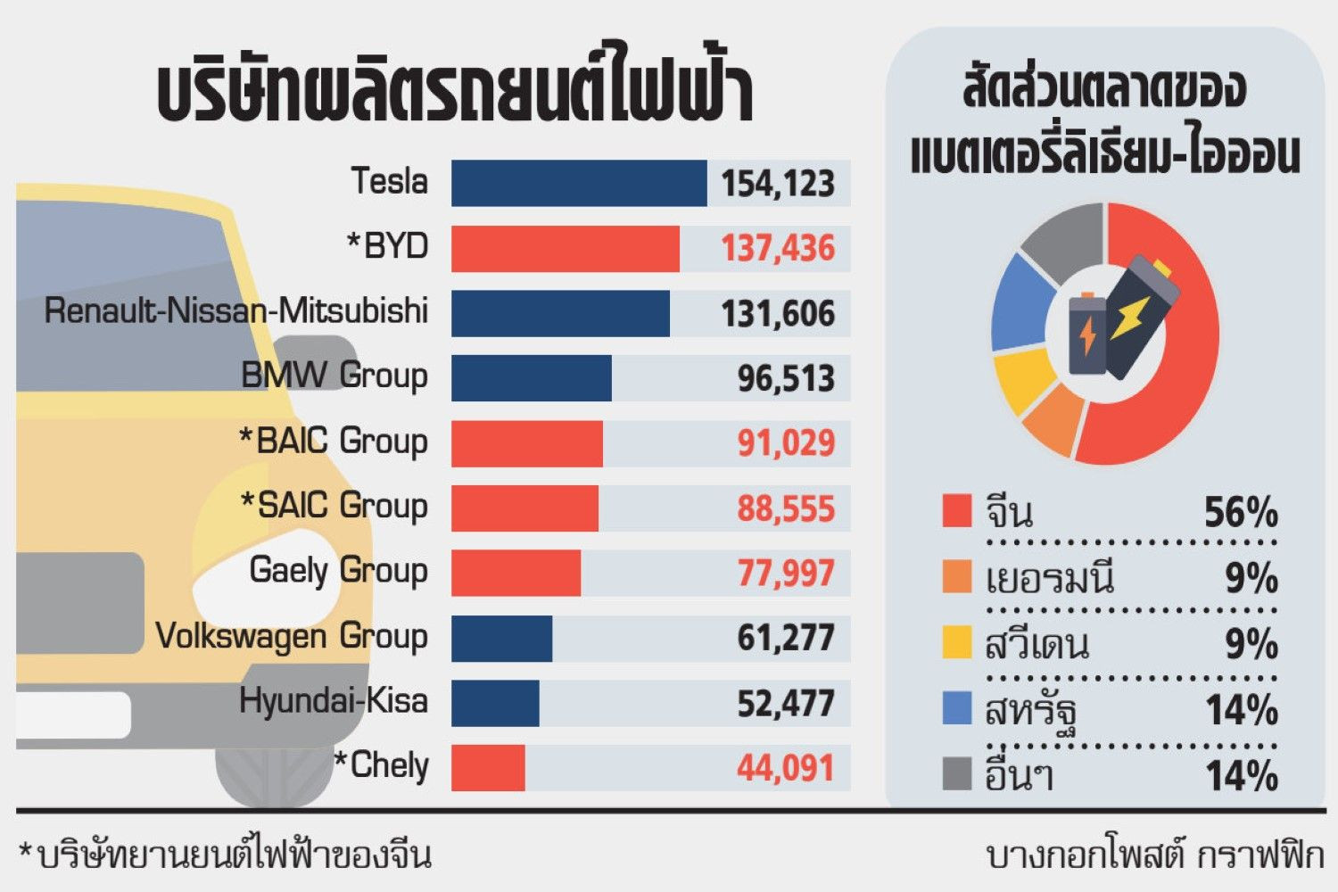 การเปลี่ยนตลาดรถยนต์ในจีนจาก “น้ำมัน” มาสู่ “EV” นั้น ถือว่ารัฐบาลได้ส่งสัญญาณยาแรง ทำเอาค่ายรถยนต์จากยุโรป อเมริกา และญี่ปุ่นแทบตั้งตัวไม่ทัน พอหันมาจะทำเลียนแบบจีนก็พบว่าห่วงโซ่ธุรกิจหลายส่วนโดนจีนกินรวบไปหมดแล้ว เช่น ธุรกิจแบตเตอรี่ลิเธียม-ไอออน เป็นต้น