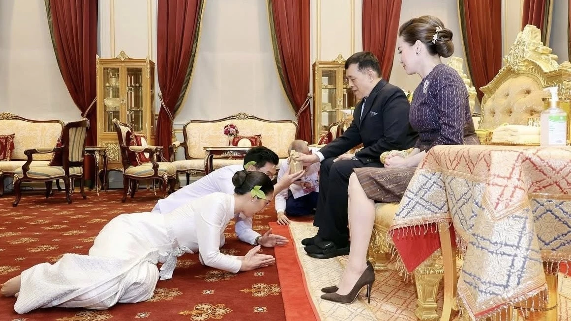 ในหลวง-พระราชินี พระราชทานน้ำสังข์สมรสพระราชทานแก่บุตรสาวอดีตนายกฯเศรษฐา
