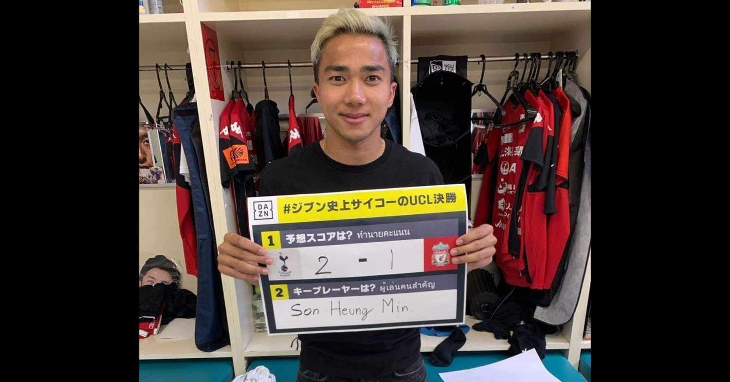 “เจ” ชนาธิป สรงกระสินธ์ เพลย์เมกเกอร์ทีมชาติไทยของคอนซาโดเล่ ซัปโปโร ทำนายผลนัดชิงชนะเลิศศึกยูฟ่า แชมเปี้ยนส์ลีก ระหว่าง “หงส์แดง” ลิเวอร์พูล พบกับ “ไก่เดือยทอง” สเปอร์ส โดยชนาธิปเชื่อว่าสเปอร์สจะเป็นฝ่ายได้ฉลองแชมป์ด้วยชัยชนะ 2-1 พร้อมระบุด้วยว่า ซนเฮืองมิน ดาวยิงพลังโสมของทีมไก่เดือยทองจะเป็นคีย์แมนสำคัญในเกมนี้