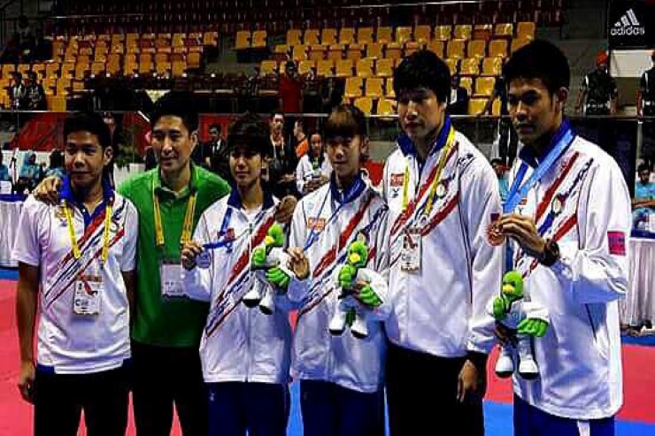 ทั้งนี้ เหรียญทองแรกได้มาจาก รุ่นน้ำหนักไม่เกิน 49 กก.หญิง "เทนนิส" พาณิภัค วงศ์พัฒนกิจ รอบชิงชนะเลิศ ทำศึกสายเลือดเอาชนะ "เล็ก" ชนาธิป ซ้อนขำ นักกีฬารุ่นพี่ไป 5-0 คะแนน โดย ชนาธิป ได้เหรียญเงิน ส่วนเหรียญทองปิดท้ายเมื่อวันที่ 4 ก.ย. เป็นรุ่นน้ำหนักไม่เกิน 55 กก.ชาย "เจ้าเทม" เทวินทร์ หาญปราบ อาศัยความสามารถที่ดีกว่าไล่เตะเอาชนะ วาเลนติโน ทานูจายา จากอินโดนีเซียเจ้าภาพ ขาดลอย 25-1 คะแนน