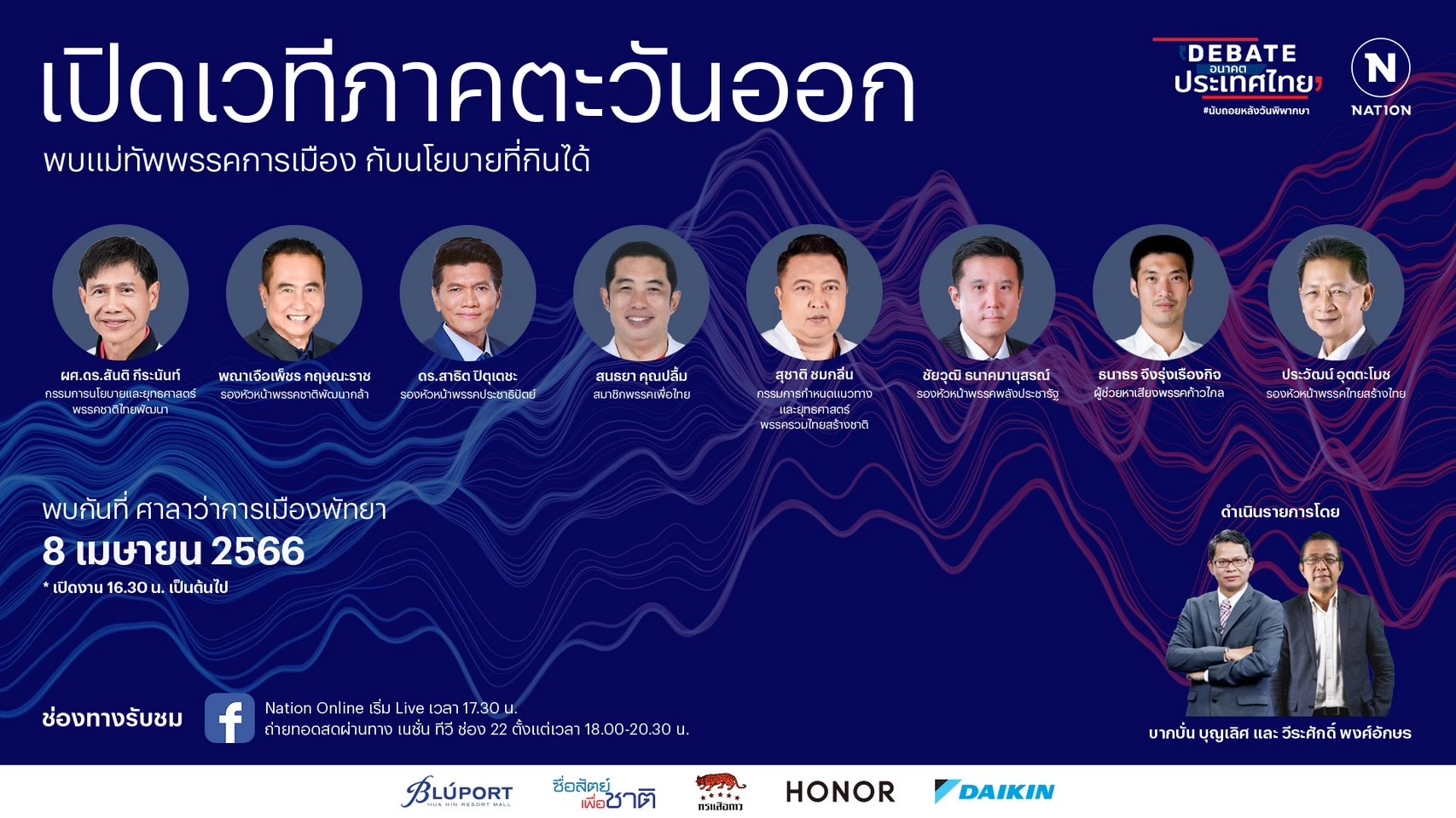 เนชั่นเปิดเวทีดีเบต ฟังนโยบายภาคตะวันออกจาก 8 พรรค โดยเนชั่นทีวีถ่ายทอดสดจากศาลากลางเมืองพัทยา เย็นวันนี้
