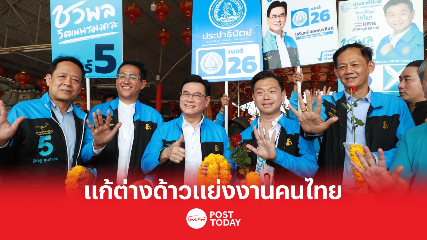 หัวหน้าพรรคประชาธิปัตย์ จุรินทร์ ลักษณวิศิษฏ์ ยกทีมช่วยผู้สมัครรับเลือกตั้งส.ส.สมุทรสาคร 3เขต 5 - 5 - 5 พร้อมรับหนังสือร้องเรียนแก้แรงงานต่างด้าวแย่งงานคนไทย
