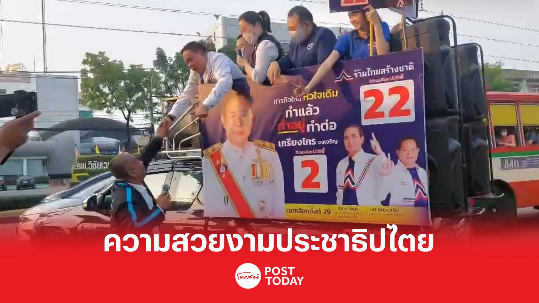 เมื่อวันที่ 27 เม.ย.66 เวลา 17.30 น.ขณะที่นายวัชระ เพชรทอง ผู้สมัครส.ส. เขตบางแค-หนองแขม เบอร์ 6 พรรคประชาธิปัตย์ กำลังปราศรัยหาเสียงกับพี่น้องประชาชนที่บริเวณสามแยกซอยเพชรเกษม 77 แขวงหนองค้างพลู เขตหนองแขม กรุงเทพฯปรากฎว่ามีรถหาเสียงของพรรครวมไทยสร้างชาติผ่านมาโดยมีพล.ต.อ.อัศวิน ขวัญเมือง ยืนหาเสียงอยู่บนรถ