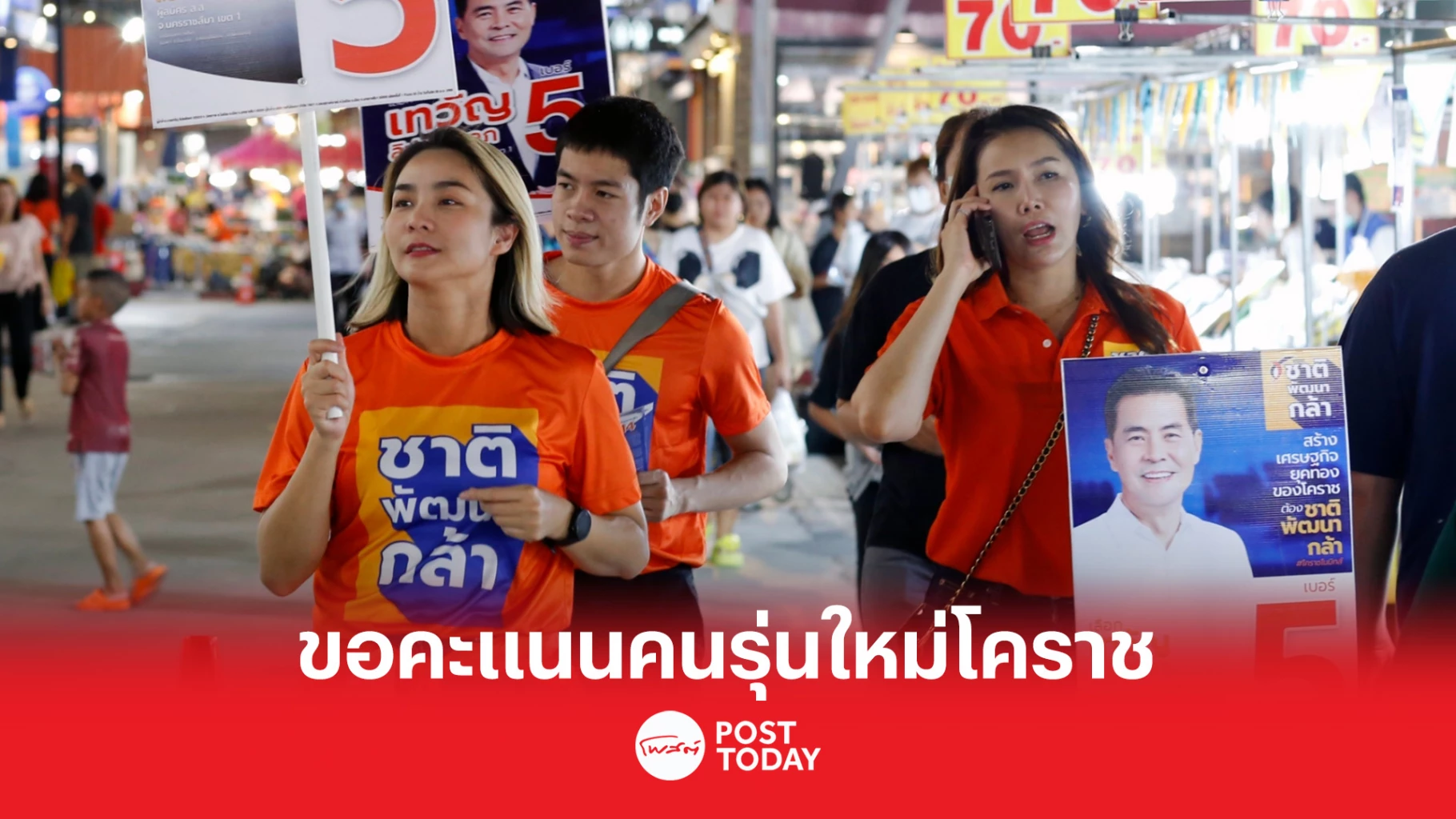 นางสาวเยาวภา บุรพลชัย โฆษกพรรคชาติพัฒนากล้า ผู้สมัคร ส.ส.บัญชีรายชื่อลำดับที่ 5 นำทีมงานคนรุ่นใหม่ชาติพัฒนากล้าโคราช พูดคุยกับพี่น้องประชาชน เด็ก เยาวชน คนรุ่นใหม่ ที่ตลาดเซฟวัน เมื่อวันที่ 11พ.ค.2566 เวลา 20.00น.