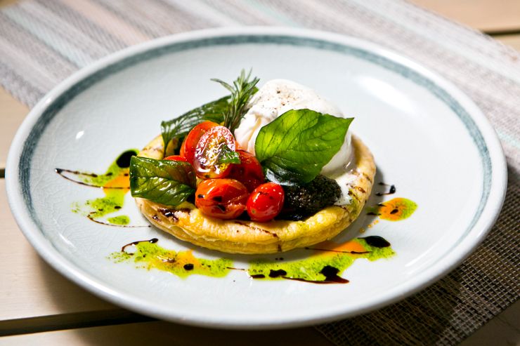 ต่อด้วย Burrata Salad ชีสบูราตาที่มีความนุ่มในตัว เสิร์ฟพร้อมมะเขือเทศเชอร์รี่สดรสชาติหวานกรอบ ซึ่งคลุกเคล้ามากับมะกอกดำบดและน้ำมันใบกะเพรา กินแล้วรู้สึกสดชื่น