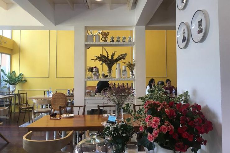 เมื่อไปถึงที่หน้าร้านแห่งนี้ บรรยากาศเหมือนการนำบ้านเดิมมาปรับแต่งทาสีให้สวยสดใส สีเหลืองโดดเด่นเห็นมาแต่ไกล จากนั้นหากเข้าไปในร้านแล้ว ตามฝาผนังก็จะมีการตกแต่งด้วยเครื่องครัว เช่น ตะหลิว ไม้พาย เขียง ผสมผสานกับของกุ๊กกิ๊กตกแต่งบ้านอื่นๆ ได้อารมณ์เหมือนเดินเข้าไปในบ้านเพื่อนที่เปิดเรือนชานไว้ต้อนรับแขกมารับประทานอาหารร่วมกันพร้อมหน้าพร้อมตา