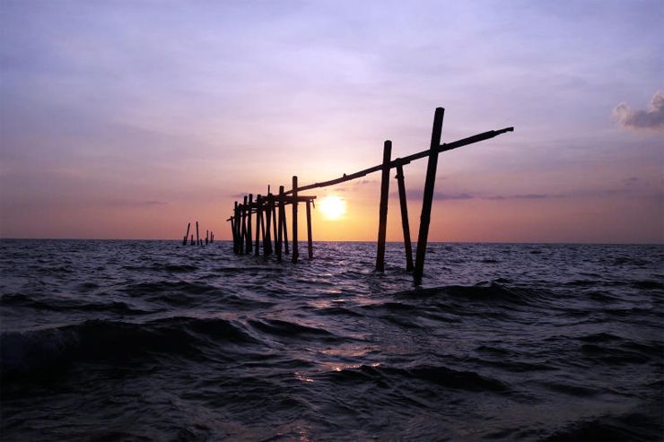 โผล่จากท้องทะเลรับเช้าวันใหม่ พร้อมกับแสงสีส้มที่สะท้อนกับน้ำทะเล