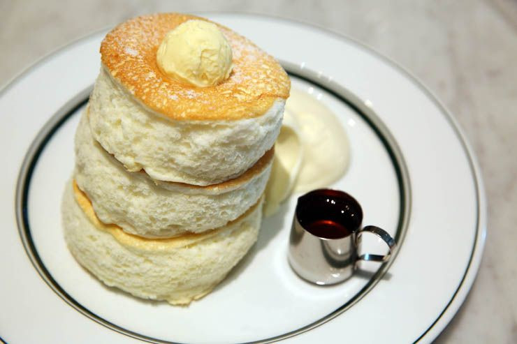 แพนเค้กหน้านุ่ม 3 ชิ้นวางซ้อนกันเป็นคอนโด เสิร์ฟมาพร้อมกับครีมนามะ (Nama Cream) ที่นุ่มเบาพอๆ กัน สำหรับคนที่ชอบต้องบอกว่ากินแล้วมัน “ฟิน” จริงๆ นอกจากนี้ คนที่ชอบความหวานขึ้นมาหน่อย ยังมีเมเปิ้ลไซรัปสุดหอมหวานให้มาในเซตด้วยกินพร้อมๆ กับเนื้อแพนเค้กและครีมนามะ เสริมรสชาติกันเข้าไปอีก