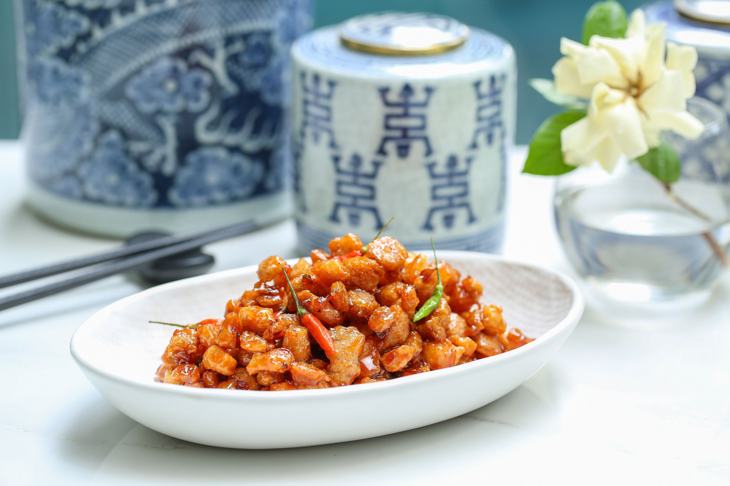 สิ่งสำคัญคือ คุณภาพของน้ำตาลปี๊บที่เลือกใช้จะเป็นน้ำตาลโตนด หรือน้ำตาลมะพร้าวก็ตามแต่ ขอให้เลือกคุณภาพดีแล้วอาหารจานนี้จะอร่อยที่สุด เคี่ยวให้เกือบเป็นน้ำตาลไหม้ ย้ำว่าแค่ใกล้ๆ จะได้ไม่ขมมาก หมั่นสังเกตโดยการดมกลิ่นหอมๆ ที่จะเปลี่ยนไปของน้ำตาลรวมทั้งสีสัน จากนั้นจึงค่อยๆ เติมเครื่องปรุงอื่นๆ ลงไป อีกเช่นกันสำหรับช่วงเจจึงเป็นซีอิ๊วและซอสปรุงรส ถ้านอกช่วงเจจะใช้เป็นน้ำปลาดีๆ ลงไปแทนก็จะได้รสชาติต่างกันออกไป ก่อนจะเอาโปรตีนเกษตรลงไปเคล้าถ้าชอบรสจัดเข้มข้นอย่าลืมพริกป่นเหยาะลงไปสักหน่อยจะทำให้กลิ่นหอมและจี๊ดจ๊าดขึ้น