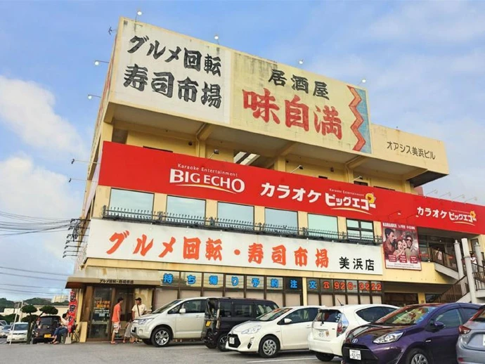 หลังจากได้ขนมรองท้องเป็นที่เรียบร้อย น้ำย่อยก็เริ่มทำงานจริงจัง เราจึงตัดสินใจกลับไปที่หมู่บ้านอเมริกันอีกครั้ง เพื่อไปกินร้านซูชิที่พลาดไปเมื่อวันก่อนโดยเฉพาะ คราวนี้คิวเยอะแค่ไหน ต้องรอนานแค่ไหนก็ไม่หวั่น พร้อมสู้! เวลาห้าโมงโดยประมาณ เราก็มาถึงร้านซูชิ Gourmet Sushi-Go-Round Ichiba Mihama ซึ่งตั้งอยู่หน้าทางเข้าหมู่บ้านอเมริกัน ดีจังที่วันนี้คิวไม่เยอะ ที่จอดรถหน้าร้านก็มี บรรยากาศในร้านไม่วุ่นวายเท่าตอนดึกของคืนวันก่อน ภายในร้านจะมีสายพานอยู่ตรงกลางร้าน สามารถมองเห็นการทำอาหารของเชฟได้ มีที่นั่งแบ่งออกเป็นโซนรอบสายพาน และโซนโต๊ะนั่งสำหรับครอบครัวใหญ่ รอคิวไม่นานก็ได้ที่นั่งในโซนรอบสายพาน แต่ละที่นั่งจะมีหน้าจอสามารถจิ้มสั่งอาหารได้เลย หรือจะเลือกหยิบจานบนสายพานก็ได้ ดูสิ! แต่ละจานที่วิ่งมาน่ากินทั้งนั้นเลย มีทั้งซูชิ ของว่าง อย่างพวกของทอด ของหวานผลไม้ แต่คิดว่าถ้าเป็นซูชิสั่งใหม่ก็น่าจะสดกว่า และบางเมนูก็มีให้สั่งจากจอเท่านั้น มาแล้ว!! เนื้อปลาแผ่นใหญ่มากเต็มๆ คำ ปลาสดใช้ได้เลยนะ อร่อย ไม่แพงด้วย ราคาจะขึ้นอยู่กับสีของจาน กินได้ไม่กี่จานก็แน่นท้องแล้ว เลยปิดท้ายด้วยสับปะรดโอกินาวา อีกหนึ่งของขึ้นชื่อที่ต้องโดน ถ้าใครชอบสับปะรดฉ่ำๆ ต้องชอบสับปะรดโอกินาวาแน่ บอกเลยอร่อยมาก กินแล้วสดชื่น ปิดมื้ออาหารนี้ได้อย่างสมบูรณ์แบบ นี่เรามาตั้งแต่ฟ้าสว่างจนตอนนี้เริ่มโพล้เพล้แล้ว ยิ่งเย็นคิวก็เริ่มเยอะ ทะลุออกไปถึงข้างนอกร้านเลย ไหนๆ ก็มาแล้วขอเดินเล่นที่หมู่บ้านอเมริกันอีกครั้ง ไปหาของหวานล้างปากตบท้ายกันซะหน่อย ไอศกรีม Blue Seal เป็นไง? ไปลองกันเลยดีกว่า