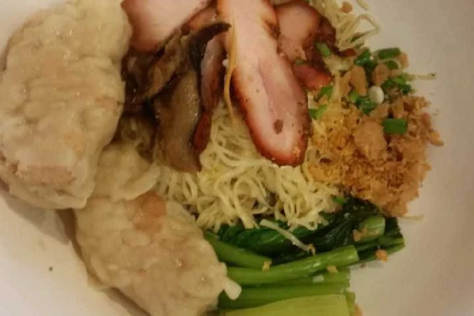 ร้านนี้เขาให้บริการอาหารจีนสไตล์ บะหมี่เกี๊ยวกุ้ง ข้าวหมูแดง ข้าวไก่ตุ๋น ขนมจีบ เมนูต่างๆ เยอะมากสามารถสลับสับเปลี่ยนหรือเพิ่มเติมท็อปปิ้งได้ตามความต้องการของเราเลยครับ ทีเด็ดจะอยู่ที่บะหมี่ปูกับเกี๊ยวกุ้งยักษ์ที่เสิร์ฟมาแบบชิ้นใหญ่เห็นแล้วต้องร้องว้าว เป็นส่วนผสมระหว่างกุ้งสับกับกุ้งที่เป็นตัวเรียกว่ารสชาติกุ้งจะเด่นขึ้นมาเลยละครับ