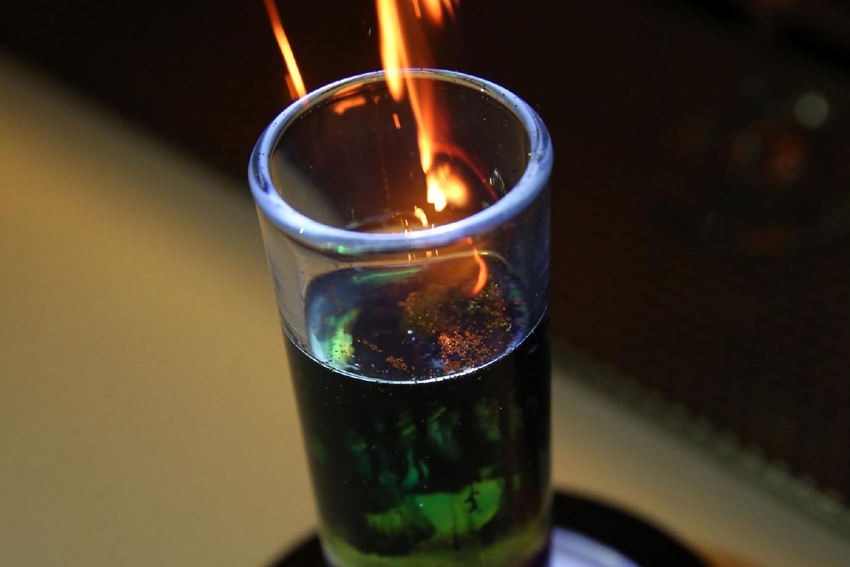 ตบท้ายแห่งค่ำคืนด้วย Baby Bloom เริ่มจากการใส่ Edible Flower และ Lavender Syrup หยอดด้วย Apple Liqueur ตามด้วย Grenadine และ Irish Cream Liqueur ก่อนจะท็อปด้วย Absinthe แล้วจุดไฟ แนะนำให้ดื่มจนหมดรอบเดียวจึงจะได้ครบทุกรสชาติ