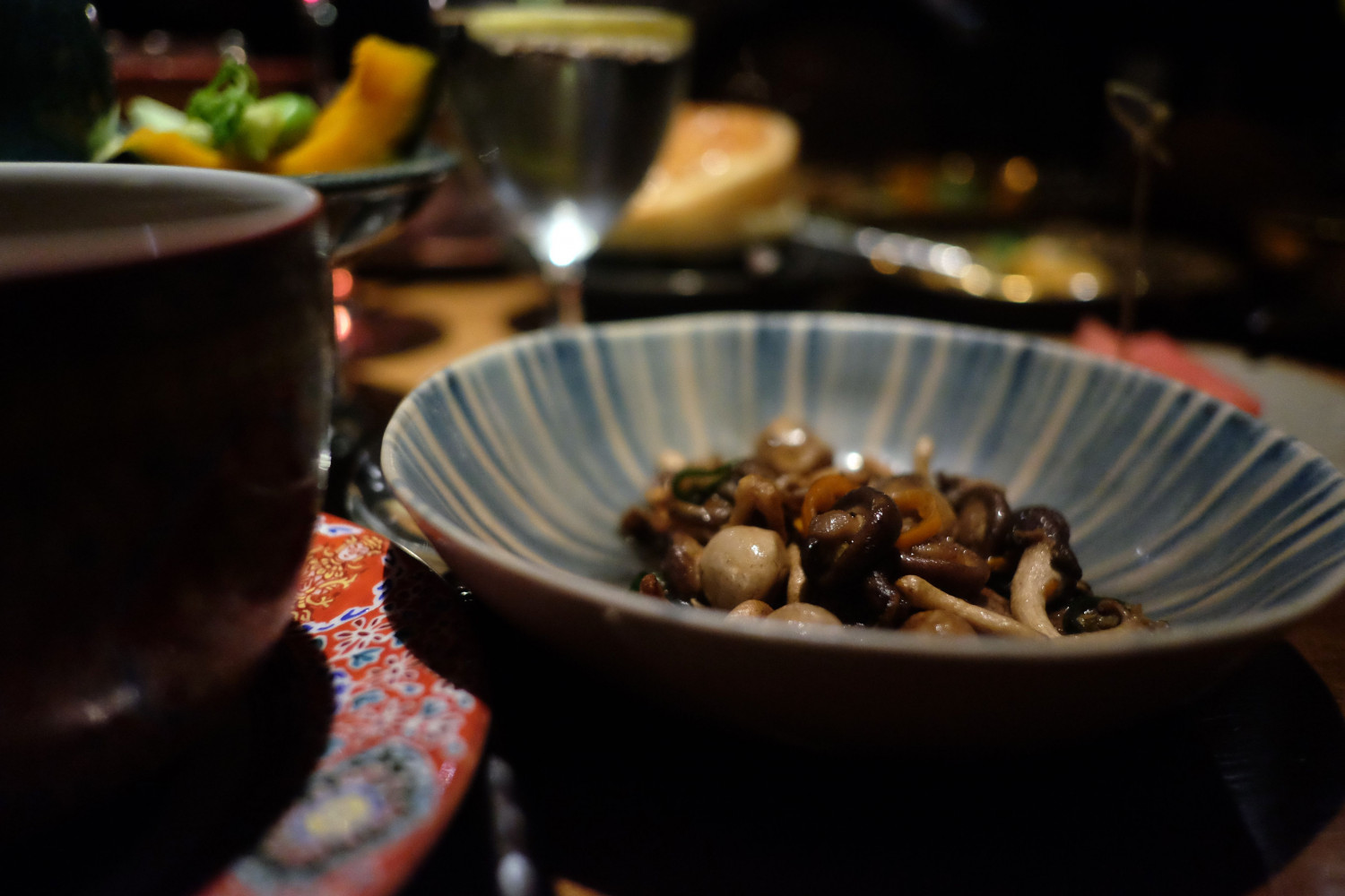 มาถึงสำรับเมนคอร์ส Thai Family Style Sharing Main Dishes ประกอบด้วย “แกงเขียวหวานฟองเต้าหู้สด” (Thai Green Curry with Fresh Bean Flour Sheets) “ไข่พะโล้เต้าหู้สูตรคุณย่า” (Soy Egg and Tofu in Sweet Brown Sauce) “วุ้นเส้นสดผัดไข่เค็มเห็ดหูหนูกรอบ” (Stir-Fried Fresh Glass Noodles with Salted Eggs and Blank Ear Mushroom) “เต้าเจี้ยวหลนหลงไพร” (Preserved Soy Bean Dip Served with Mixed Vegetables) และ “เห็ดรวมเพื่อนยากคั่วพริกเกลือ” (Stir fried Mixed Mushroom with Salt and Chilli)