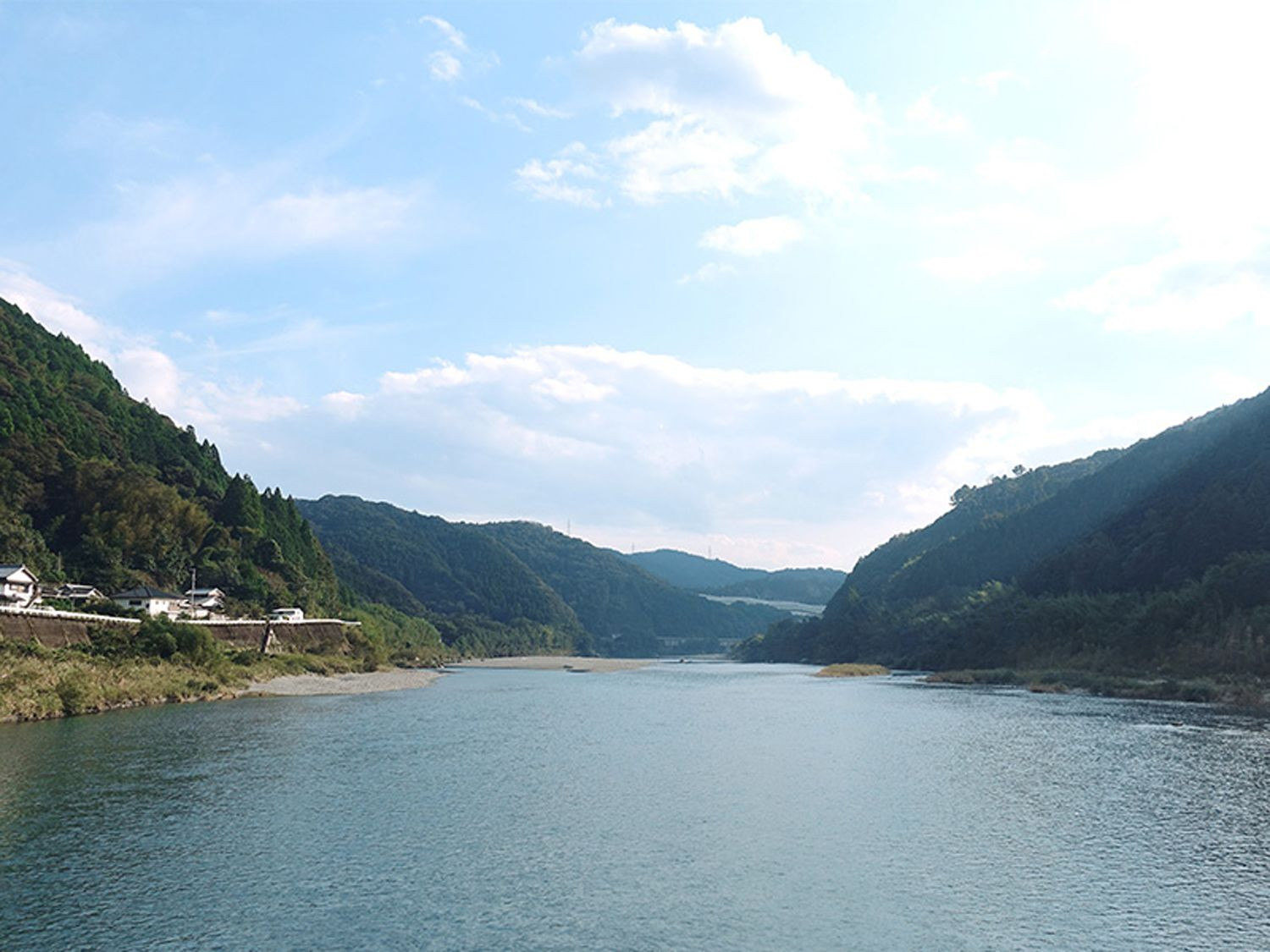 แม่น้ำนิโยโดะเป็นแม่น้ำสีฟ้าใสบริสุทธิ์ มีความยาวเป็นลำดับที่ 3 ของภูมิภาคชิโกคุ รองมาจากแม่น้ำชิมันโตะ และแม่น้ำโยชิโนะ มีต้นกำเนิดจากภูเขาอิชุซุรุซึ่งเป็นภูเขาสูงที่สุดในฝั่งตะวันตกของญี่ปุ่น โดยไหลผ่านจังหวัดเอฮิเมะและโคจิ ที่เราเห็นตามทางระหว่างที่นั่งรถผ่านมานั่นเอง เมื่อช่วงเช้าที่ไปน้ำตกนาคัตสึ แม่น้ำที่ไหลมาจากน้ำตกก็เป็นหนึ่งในสายน้ำที่ไหลรวมกับแม่น้ำนิโยโดะเช่นกัน แม่น้ำนิโยโดะขึ้นชื่อเรื่องสีของน้ำและความใสบริสุทธิ์ ยิ่งเป็นช่วงฤดูร้อนแม่น้ำก็ยิ่งมีสีฟ้าชัดเจน จุดชมวิวแห่งนี้ เป็นเพียงสะพานคอนกรีตขนาดความกว้างเท่ารถญี่ปุ่นคันเล็กๆ หนึ่งคันผ่านได้เท่านั้น และมีส่วนที่ยื่นออกมาเหมือนเป็นที่ที่เราสามารถยืนถ่ายรูปได้หรือเอาไว้ยืนตกปลาก็ได้ ในระหว่างเดินบนสะพานมีรถสวนมาพอดี พวกเราจึงต้องไปหลบตรงส่วนที่ยื่นออกไปด้านข้างของสะพาน ก็เลยเข้าใจแล้วว่าการทำพื้นที่ด้านข้างยื่นออกไปแบบนี้ก็เพื่อหลบรถนี้เอง รถจะได้ผ่านไปได้อย่างสะดวกและไม่เบียด