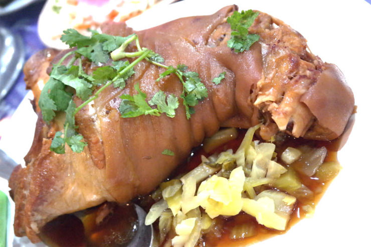 จุดเด่นของร้านนี้ก็คือสารพัดเมนูขาหมู ที่พลิกแพลงไม่ให้เกิดความจำเจแบบร้านข้าวขาหมูแบบเดิมๆ อย่าง ขาหมูตุ๋นยาจีน ขาหมูผัดเม็ดมะม่วง ขาหมูขี้เมาทอดกรอบ ขาหมูฮ่องเต้ ขาหมูผัดเผ็ด ยำขาหมูทอดกรอบ ต้มยำขาหมู เกาเหลาขาหมู อย่างเมนู ขาหมูตุ๋นยาจีน ที่มีกลิ่นหอมเครื่องยาจีน รสชาติที่เข้มข้นกลมกล่อม ไม่มันจนเลี่ยน กลิ่นเครื่องเทศยาจีนก็ใส่ไม่มากจนทำให้รสชาติที่คุ้นเคยเปลี่ยนไป หรือเรียกได้ว่าให้ทั้งกลิ่นที่หอมกำลังดีและรสชาตินั่นละครับ ยิ่งรับประทานพร้อมผักกาดดองและเครื่องเคียงแก้เลี่ยนก็ยิ่งทำให้ขาหมูจานนี้อร่อยยิ่งขึ้น ส่วนเมนูอื่นก็อร่อยไม่แพ้กันเพราะมีต้นทางมาจากหม้อเดียวกัน