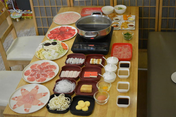 สำหรับเนื้อวัวจัดเป็นพระเอกของร้านที่ห้ามพลาด มีทั้งสันคอวัว และเสือร้องไห้ ที่นำเข้าจากประเทศออสเตรเลีย และเมนูเนื้อหนอก ที่คัดสรรมาจากเนื้อวัวไทยพรีเมียม ที่นำมาแล่บางเฉียบจนมองทะลุอีกฝั่งได้ และมีเมนูให้เลือกมากกว่า 40 ชนิด ในราคา 329 บาท/ท่าน