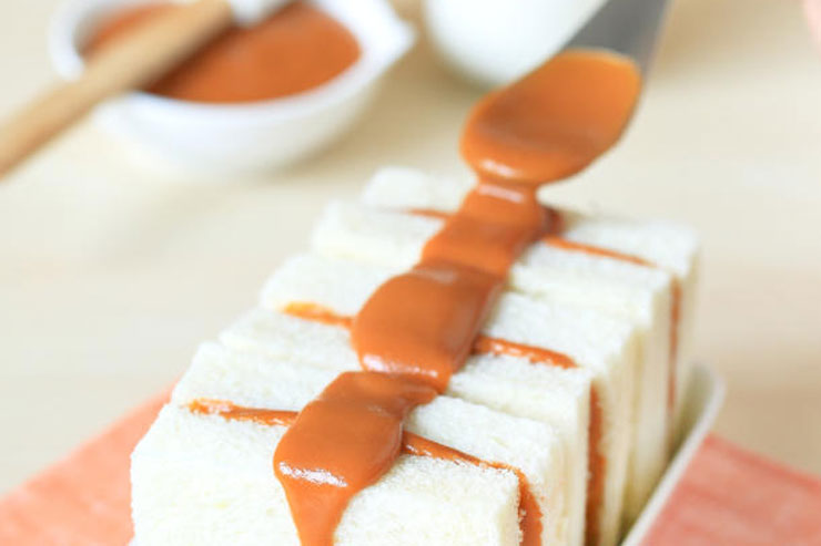 สำหรับแซนด์วิช : ทาสังขยาที่ได้ลงบนขนมปังประกบคู่ พักไว้ เวลาจะรับประทานนึ่งที่ไอน้ำจนร้อน