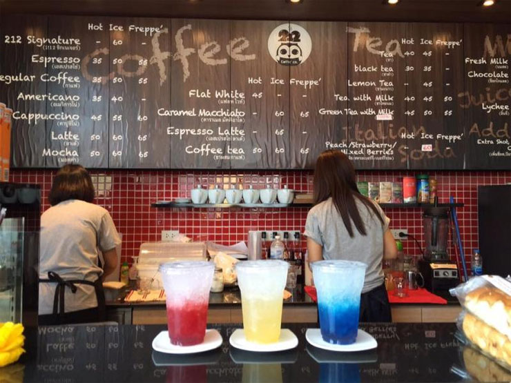 ร้าน 212 caffè co ตั้งอยู่บนชั้น 2 ของตึกคณะรัฐศาสตร์ (อาคารใหม่) มหาวิทยาลัยรามคำแหง หัวหมาก ใครที่แวะเวียนเข้าไปทำธุระหรือไปเรียนหนังสือก็อย่าลืมแวะเข้าไปจิบเครื่องดื่ม หรือชิมขนมอร่อยๆ ซึ่งคุณปลา เจ้าของร้าน 212 caffè co บอกว่าขนมภายในร้านที่ทำสดใหม่ไม่ใส่สารกันบูดลูกค้ามั่นใจได้ในความสด สะอาด และปลอดภัย