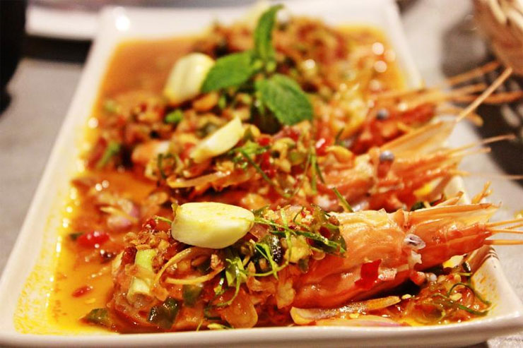 นอกจากเมนูกุ้งเผาแล้วยังมีเมนูเด็ดอีกคือ พล่ากุ้ง ปรุงด้วยสมุนไพรที่มีประโยชน์ต่อสุขภาพ เช่น ตะไคร้ ข่า ถูกปากคนไทยด้วยรสชาติเผ็ดจัดจ้าน เป็นเมนูสุดแซ่บอีกเมนูที่มีรสชาติเข้มข้น หอมอร่อยจัดจ้าน กุ้งนุ่มหวานๆ กลิ่นหอมด้วยผักสมุนไพรต่างๆ คลุกเคล้าน้ำยำรสเด็ดเข้ากันมาก