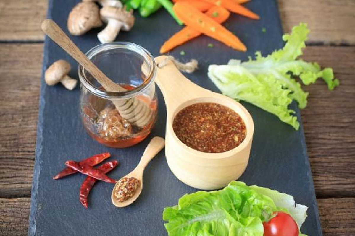 ผสมทุกอย่างเข้ากัน คนเบาๆ พักไว้สัก 30 นาที เพื่อให้หอมอร่อยเข้าเนื้อ ใส่ขวดเก็บไว้ในตู้เย็นได้ 2-3 อาทิตย์จะใช้ราดผักก็ได้หรือจะใช้จิ้มผักก็อร่อย