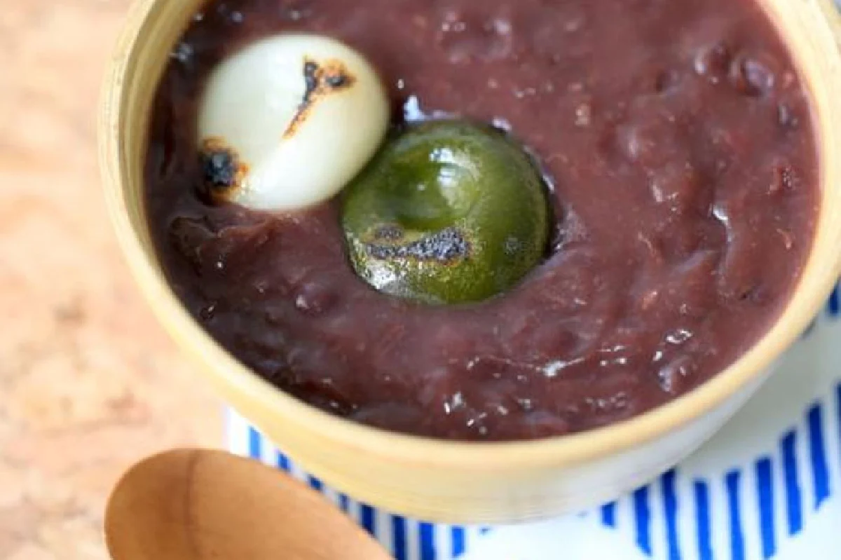 จะให้ตรงตามตำรับญี่ปุ่นและได้ “Look” มากขึ้น ต้องเพิ่มดังโงะปั้นก้อนกลม ต้มให้สุกนุ่มหนึบเสียบไม้แล้วผิงไฟจะเป็นเตาแก๊สก็ได้ หรือจะให้เหมาะจุดถ่านให้แดงแล้วผิงดังโงะให้พอจะเกรียมสักนิด จะช่วยเพิ่มความหอมอร่อยให้กับถั่วแดงร้อนได้