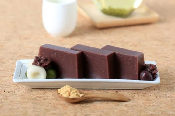 ฉบับนี้เรานำแยมถั่วแดงมาเปลี่ยนเป็น Yokan หรือวุ้นถั่วแดง โยกังวุ้นถั่วแดงแบบญี่ปุ่นนั้น มีแบบสอง แบบแรก เป็นแบบที่เก็บไว้ได้นาน น้ำตาลมาก เนื้อแข็งหนึบๆ หวานจัด ใครรับประทานแบบนี้ก่อนมักจะไม่ชอบ พานจะไม่ชิมวุ้นถั่วแดงแบบอื่นๆ ไปเสีย ส่วนแบบที่สอง คือแบบที่ผู้เขียนสนใจเพราะเป็นวุ้นถั่วแดงแบบสด สมัยก่อนขายดิบขายดีที่ห้างไดมารู ตอนที่ผู้เขียนเป็นเด็ก ขายหมดเร็วจนต้องไปรอซื้อแต่เช้า วุ้นถั่วแดงแบบน้ำเยอะ หรือที่เขาเรียก Mizu Yokan นั้น คล้ายกับวุ้นบ้านเรา สีแดงหม่นๆ ไม่ใสแจ๋ว เพราะเข้มข้นด้วยถั่วแดงบด มิซูโยกัง ยังแบ่งอีก 2 ชนิด ตามความละเอียดของถั่วแดงคือ แบบเนื้อเนียนละเอียดเพราะทำจากแยมถั่วแดงเป็นเนื้อครีมเนียนๆ อีกแบบคือ แบบที่มีเนื้อถั่วแดงเห็นเป็นเม็ดๆ หน่อย จะอร่อยเคี้ยวมัน