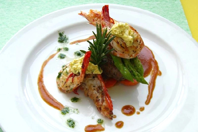 ห้องอาหารเรือนต้น คอฟฟี่ช็อป เอาใจคนชอบรับประทานเนื้อ มาชิมเมนู “เนื้อสันในกับกุ้งลายเสือย่างซอส” เนื้อสันในนำเข้าคุณภาพเยี่ยมและกุ้งลายเสือที่เลือกสรรมาอย่างดี นำมาย่างให้สุกตามชอบราดด้วยซอสเนยหรือซอสไวน์แดง ได้รสชาติหวาน นุ่ม เสิร์ฟคู่กับหน่อไม้ฝรั่ง แครอต และมันฝรั่งอบ รสชาติเข้ากัน เชิญมาสัมผัสกันได้ตลอดเดือน ส.ค.นี้