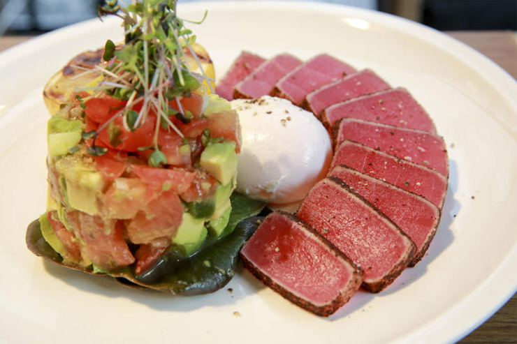 มาถึงเมนูไฮไลต์ที่ทางร้านแนะนำ มาแล้วอย่าพลาด เริ่มจาก Espresso Spiced Tuna & Avocado เมนูเบาๆ ทีเด็ดอยู่ที่ทูน่า ซึ่งนำไปเซียร์กับผงเอสเปรสโซ เพื่อให้ได้กลิ่นหอมละมุน เสิร์ฟกับไข่ดาวน้ำและอโวคาโดและมะเขือหั่นเต๋า พร้อมด้วยเลมอนย่าง ถัดมาคือ Salmon Terayaki ถูกใจคนชอบแซลมอนเพราะเสิร์ฟแซลมอนชิ้นโตย่างกับซอสมิโซะจนได้ที่ ราดด้วยซอสเทอริยากิ