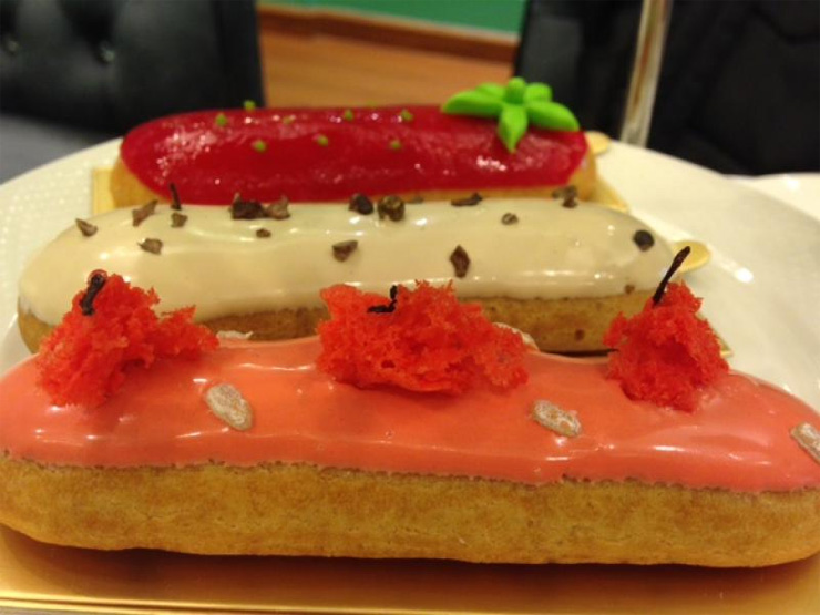 นอกจากนี้ ยังมีเมนู เอแคลร์ ที่รูปร่างแปลกจากที่คุ้นเคยที่จะเห็นกลมๆ นิ่มๆ แต่เอแคลร์ของดาราเวทีจะรียาว กรอบนุ่ม ได้ชิม3 รสชาติมีสตรอเบอร์รี่หวานหอม แต่ชอบสุดน่าจะเป็นเอแคลร์ที่มีส่วนผสมของแม่โขงและกาแฟหอมอร่อย