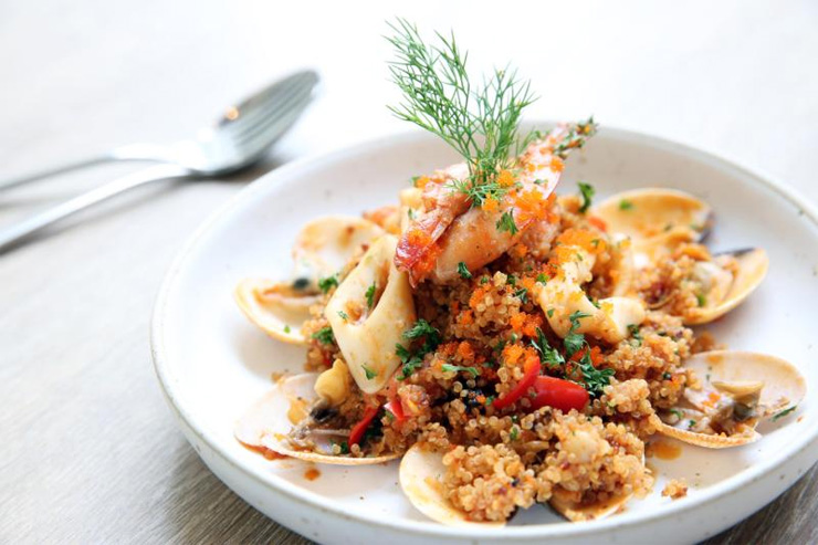 เบรกกี้ เสิร์ฟแต่ร้านอาหารออร์แกนิก ไม่ว่าจะเป็นอาหารเรียกน้ำย่อย อาหารจานหลัก เครื่องดื่มและขนม ล้วนแต่มีวัตถุดิบหลักเป็นออร์แกนิก และทุกเมนูผสมผสานการปรุงแต่งขึ้นเป็นอาหารสุขภาพให้อิ่มท้อง รสชาติถูกปาก และสำคัญที่สุดเป็นประโยชน์ต่อร่างกาย ตัวเอกของที่นี้จะเป็น ควินัว ที่เป็นเบสในหลายๆ เมนู ทั้งจานหลักและรับประทานเล่น เช่น Italian Seafood Quinoa ควินัวผัดกับซอสซีฟู้ดสไตล์