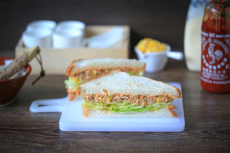ส่วนผสมสำคัญยกให้ทูน่า เลือกเอาตามชอบทั้งในน้ำเกลือหรือน้ำมันใช้ได้ทั้งนั้น แต่ขออย่างเดียว พยายามบีบน้ำให้หมาดๆ จากเนื้อทูน่า เพื่อไม่ให้แซนด์วิชของแฉะจากน้ำทูน่า แต่อยากให้ฉ่ำด้วยเครื่องปรุงของเรามากกว่า