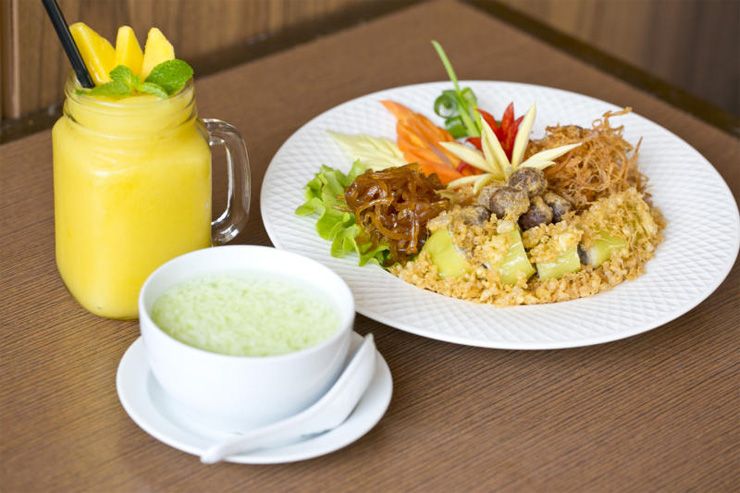 ช่วงหน้าร้อนสงกรานต์ เมนูที่เป็นพระเอกของร้าน ก็คือข้าวแช่หอมมะลิใบเตย ที่เสิร์ฟพร้อมเครื่องเคียงหลายอย่าง ประกอบด้วยกะปิทอด พริกหยวกสอดไส้ปูจ๋า หมูฝอยหวาน ไชโป้วหวาน และผักสดแกะสลักสวยงามชวนรับประทาน อร่อย กินแล้วสดชื่น เหมาะกับหน้าร้อนซึ่งมาพร้อมกับเมนูของหวานข้าวเหนียวมะม่วงน้ำดอกไม้หอมหวานอร่อยชื่นใจ