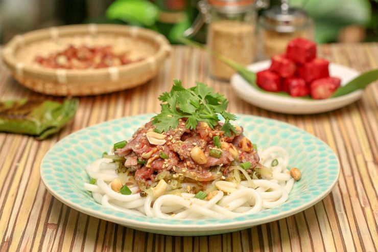 แซ่บๆ แสบทรวง ยำเนื้อสดขนมจีนไหหลำ