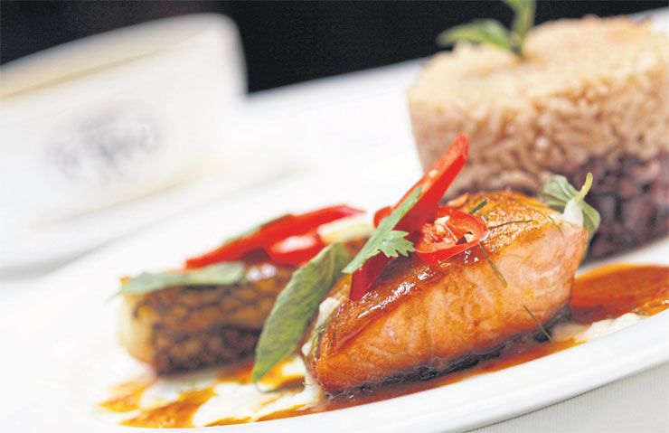 แกงไทยรสเข้มรสเค็มหวานอย่าง “ฉู่ฉี่ปลาหิมะและแซลมอน” เพิ่มเติมชาโคโคนัท(Coconut Tea) ซึ่งเป็นชาที่ให้กลิ่นอายแคริบเบียน ผสมผสานระหว่างชาดำและมะพร้าว น้ำแกงขลุกขลิกรับประทานกับข้าวหอมมะลิหุงกับชาเรดจัสมินและข้าวไรซ์เบอร์รี่ร้อนๆ เท่านี้ก็ฟิน นอกจากนั้นยังมี “ปลาหิมะราดพริก” ก่อนจะนำมาปรุงปลาหิมะจะหมักกับชาสไปซ์รูท (Spice Route Tea) ชาเขียวที่มีกลิ่นรสของขิง แล้วจึงนำไปทอดกรอบ