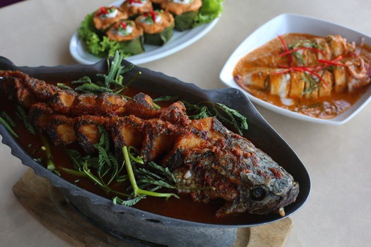 ฉู่ฉี่ปลาหมึกยัดไส้ ไส้ที่ยัดในปลาหมึกจะคล้ายๆ ห่อหมกหอมพริกแกง ยัดไส้แล้วเอาไปนึ่งเสร็จแล้วผัดกับน้ำฉู่ฉี่ที่มีจุดเด่นที่กะทิสดเอามาราด กินกับข้าวสวยรสชาติเยี่ยมเลย ส่วนพระเอกของวันนี้ก็ต้องยกให้แกงส้มแป๊ะซะปลาช่อนทอด ปลาช่อนอร่อย น้ำซุปรสชาติเข้มข้น เปรี้ยวพอดี ไม่ถึงกับเผ็ดมาก ซดร้อนๆ โอ้...ดีงามเหลือเกิน ปิดท้ายด้วยของหวานล้างปากกับทับทิมกรอบเม็ดโตเนื้อกรอบ และมะพร้าวกะทิที่ใช้ มะพร้าวนำมาเคี่ยวอย่างดี ผสมผสานกับน้ำกะทิทำเองได้รสชาติถูกใจสุดๆ