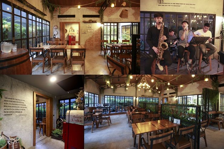 มุมในสุดของร้านเป็นสวนจริงๆ ช่วยผ่อนคลายสายตา อีกมุมทางเข้าห้องน้ำ จัดเป็นจุดที่คนชอบถ่ายรูปไม่ควรพลาด และหลายมุมของร้านมีเครื่องจักรเก่าวางประดับ เป็นสัญลักษณ์เหมืองแร่ และโคมไฟดีไซน์จำลองโรงนาโบราณให้กลิ่นอายความเป็นตะวันตกนิดๆ