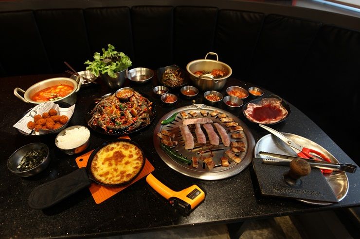 อุ่นเครื่องกับเมนูจานเดี่ยวไปแล้ว ได้เวลาของกองทัพเมนูปิ้งย่างออกโรง รับรองว่าพอร์คเลิฟเวอร์ต้องเกิดอาการรักพี่เสียดายน้อง เพราะจัดเต็มให้เลือกทั้งสามชั้นรมควัน, หมูสามชั้น, คอหมู, หมูสไลซ์ราดซอส มาพร้อมกิมมิกอย่างเครื่องวัดอุณหภูมิ และอุปกรณ์กดหมู เพื่อให้มั่นใจว่าเนื้อหมูทุกชิ้นที่ผ่านการย่างอย่างพิถีพิถันจะสุกกำลังดี จิ้มพร้อมน้ำจิ้มรสเด็ด การันตีความแซ่บถึงทรวง เพราะเจ้าของร้านชอบรสชาติแซ่บเวอร์เป็นทุนเดิมเลยรวบรวมสุดยอดเชฟจากทั่วยุทธจักรมาผนึกกำลังพัฒนาสูตรน้ำจิ้มรสเด็ดที่หาไม่ได้ที่ไหนให้แฟนปิ้งย่างได้ฟิน
