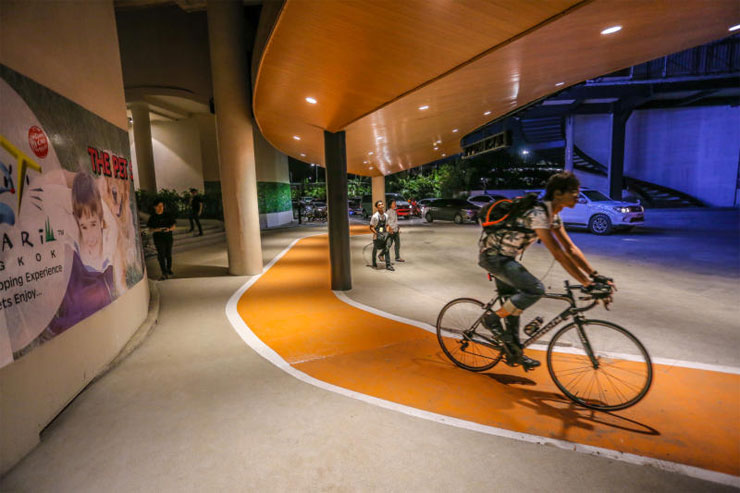 ล่าสุด ผู้เขียนได้มีโอกาสไปลองศึกษาเส้นทางการปั่นจักรยานที่ศูนย์การค้าใหม่แกะกล่องแห่งนี้ ได้เห็นถึงความตั้งใจในการสนับสนุนเหล่านักปั่นจักรยาน แม้ว่าปัจจุบันไบค์เลนถนนเลียบด่วนฯ ยังมีมุมมองต่างในเรื่องความปลอดภัยและการใช้งานได้จริง เนื่องจากการเชื่อมต่อกับเส้นทางต่อเนื่องเพื่อไปยังถนนหรือเส้นทางอื่นๆ ยังไม่สะดวกเพียงพอก็ตาม