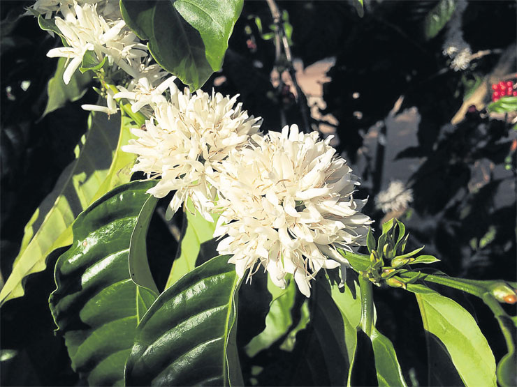 ดอกกาแฟบานสะพรั่งในไร่กาแฟที่บ้านถ้ำสิงห์ อ.เมือง จ.ชุมพร แหล่งปลูกกาแฟโรบัสต้าชื่อดังของ จ.ชุมพร