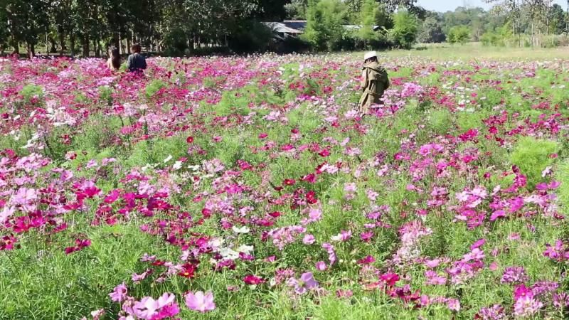 นักท่องเที่ยวแห่เข้าชมทุ่งดอกคอสมอส รับลมหนาว บริเวณก่อนทางขึ้นอุทยานแห่งชาติภูหินร่องกล้า อ.นครไทย จ.พิษณุโลก สวยงาม
