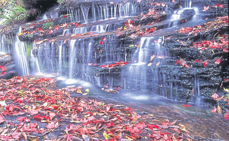 น้ำตกเพ็ญพบใหม่ เกิดจากลำธารวังกวาง น้ำตกผ่านผาหินรูปโค้ง ในหน้าหนาวใบเมเปิลที่อยู่บริเวณริมน้ำตกจะร่วงหล่นลอยไปตามผิวน้ำ ตัดกับสีเขียวของตะไคร่น้ำตามโขดหินงดงามมาก