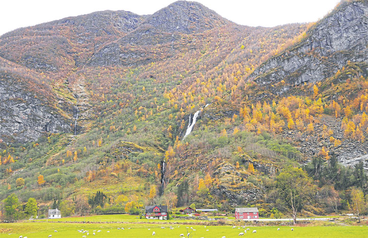 เมืองน่าประทับใจอีกเมือง คือ เมืองโฟลม(Flam) งดงามเหมือนเมืองในเทพนิยาย บ้านสีส้มสดประหนึ่งบ้านตุ๊กตา ตั้งอยู่ริมทะเลสาบแสนสงบ แค่ใช้เพียงวันเดียวก็เดินเที่ยวชมได้ครบทั้งเมือง วิถีเมืองนี้ชาวบ้านปลูกแอปเปิ้ลเป็นหลัก เดินไปไหนมาไหนก็จะเห็นคุณย่าคุณยายแหม่มออกมาเก็บแอปเปิ้ลลูกจิ๋วๆ ที่หน้าบ้าน ธรรมชาติยังเป็นจุดขายหลัก น้ำตกภูเขา คือวิวสองข้างทาง คนไทยกดชัตเตอร์กันกระหน่ำ